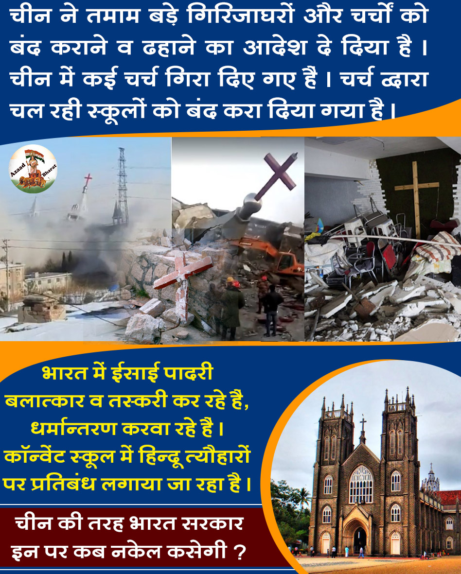 खबर के मुताबिक़, चीन सरकार ने राजधानी बीजिंग सहित तमाम बड़े मौजूद गिरिजाघरों और चर्चों को बंद कराने, ढहाने का आदेश दे दिया है । स्थिति ये हो गयी है कि हेनान प्रांत में रोमन कैथोलिकों समुदाय के पास प्रार्थना करने के लिए कोई जगह नहीं बची है ।